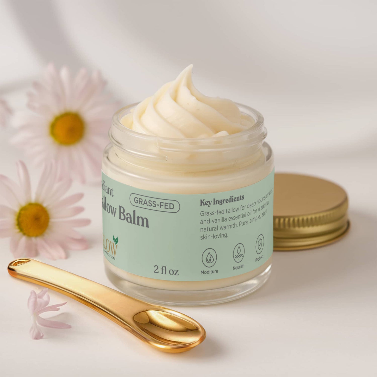 Grass-fed tallow for deep nourishment and vanilla essential oil for a subtle, natural warmth. Pure, simple, and skin-loving.
